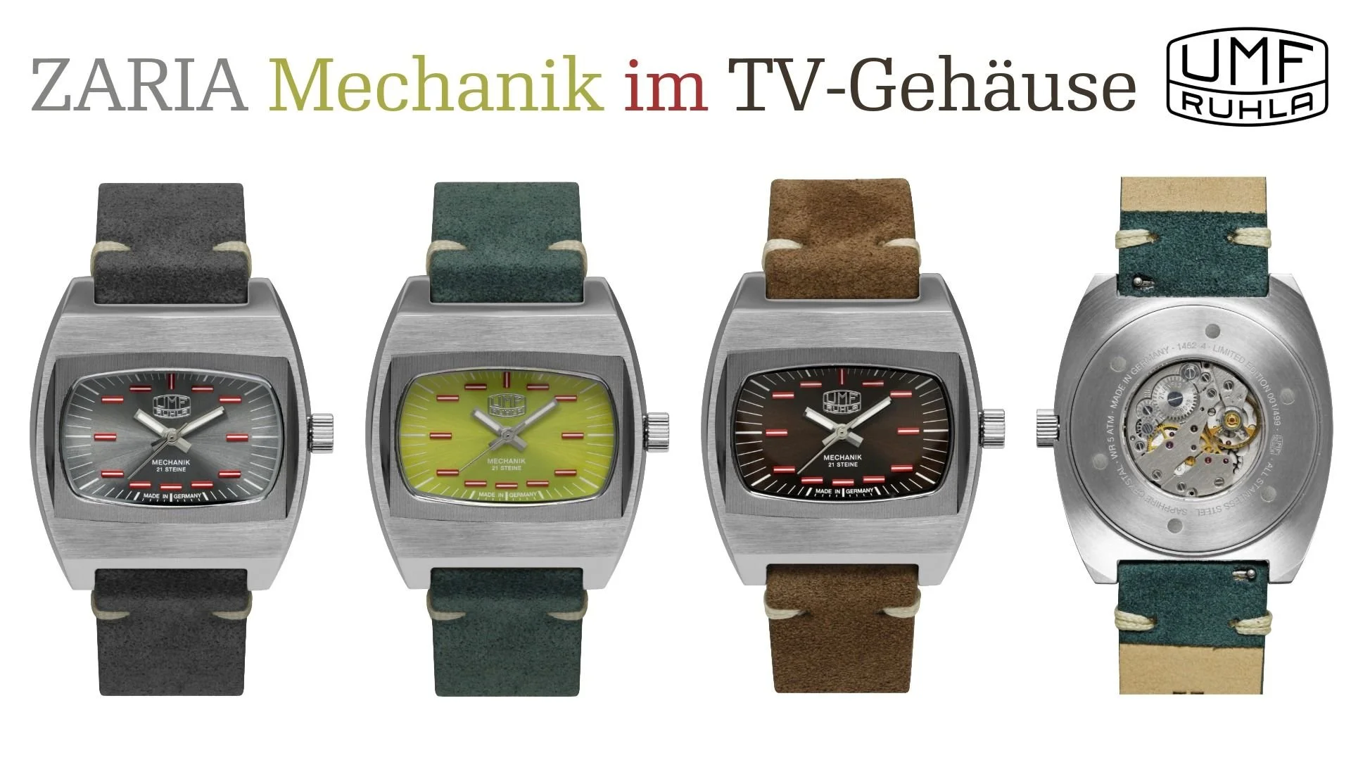 Unsere Neuheit in der ein besonderes Uhrwerk tickt, dem Quarz-UMF-Kaliber 13, „Ruhla im Herzen“.